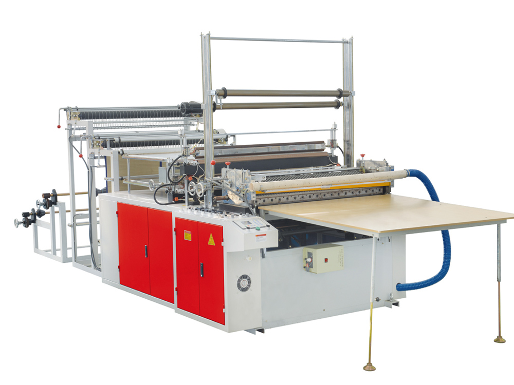 該機可同時生產上下兩條HDPE、 LDPP平口袋、垃圾袋、背心袋。
